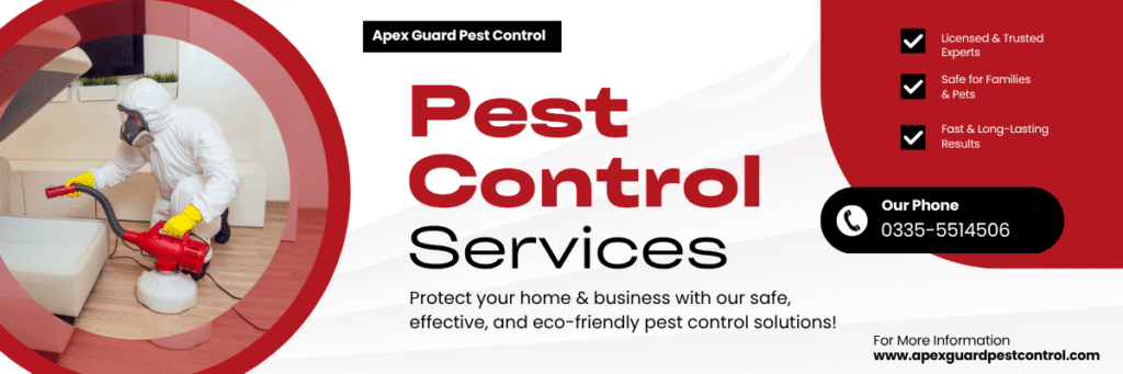 Welcome to Apex Guard Pest Control, your trusted choice for Pest Control in Islamabad and Rawalpindi. We provide fast inspections and effective, eco-friendly treatments for homes and businesses, backed by certified technicians and warranty-backed service plans. Book a free inspection today for reliable, long-term protection and quick relief from ants, cockroaches, termites, rodents, and more.